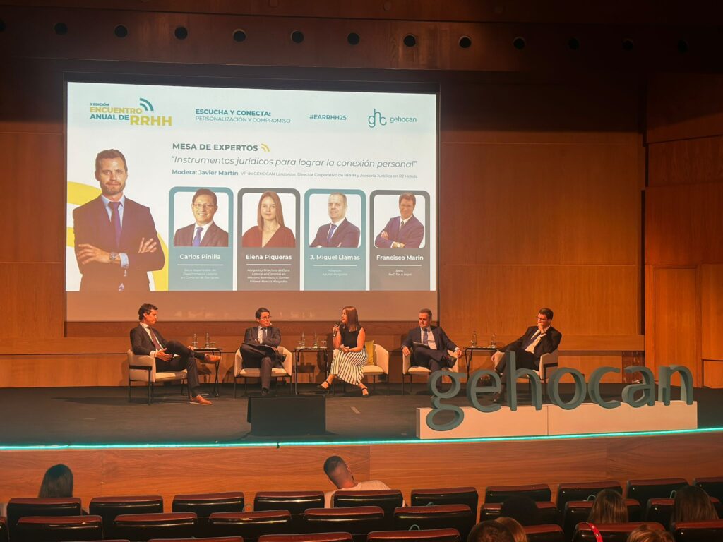 El pasado viernes, nuestra compañera Elena Piqueras López participó como ponente en la mesa «Instrumentos jurídicos para lograr la conexión personal», en el X Encuentro Anual de RRHH organizado por Asociación de RRHH Gehocan. Su intervención aportó una visión jurídica orientada a integrar la normativa con la cultura de la organización.